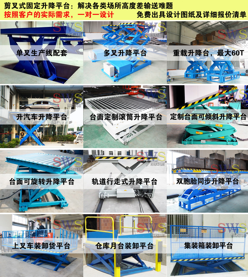 它普遍用在工件裝配時調(diào)節(jié)工件高度,大型設(shè)備裝配時部件舉升,大型機床物料上料、下料以及機器保養(yǎng)、定位、組裝、工件裝配、倉庫、車庫、工作車間等生產(chǎn)流水線高度差之間貨物運送;