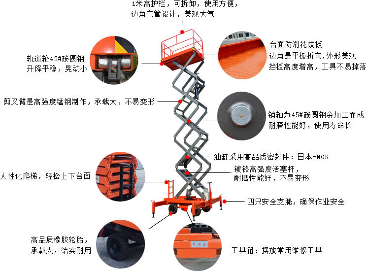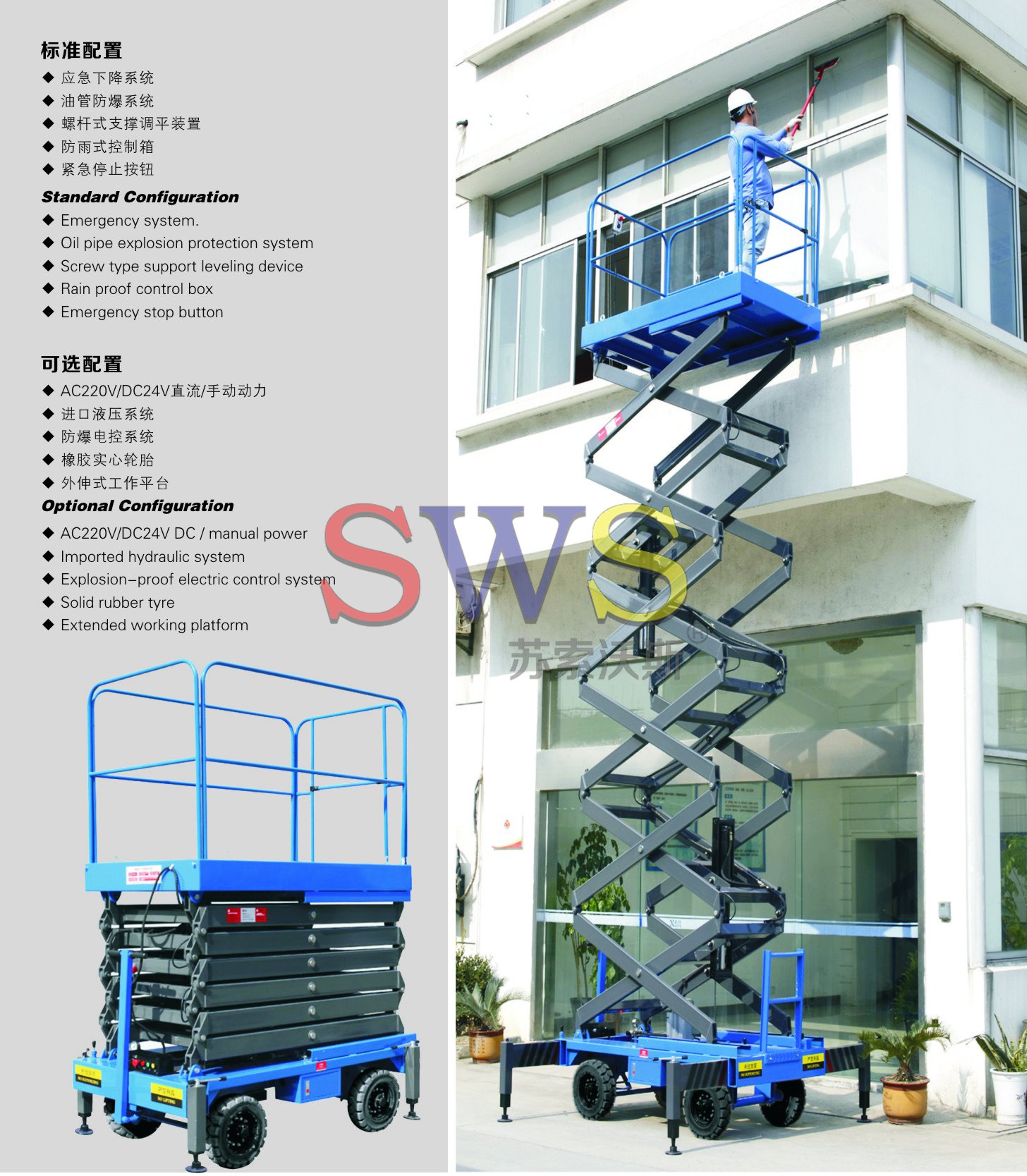 產(chǎn)品描述: 適用于廠房、工地、賓館、倉庫、機(jī)場、車站、碼頭、體育場等高大建筑之高空設(shè)備安裝、檢修和清潔衛(wèi)生,野外電力設(shè)施、高架管道、起吊機(jī)械維護(hù)保養(yǎng)等高空作業(yè)。